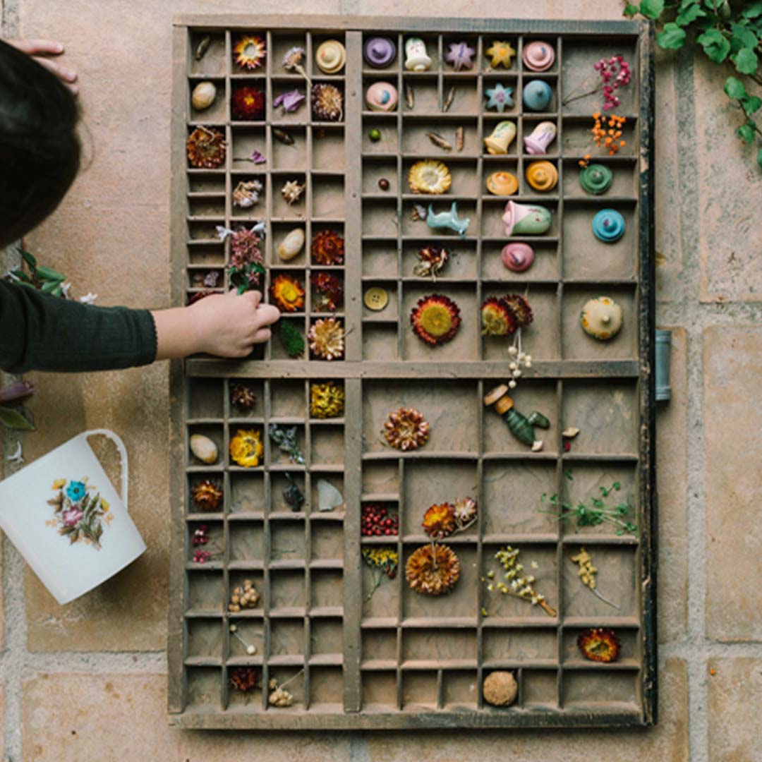 De set bestaat uit 18 bloemen met een formaat van 1,5 tot 4,5 centimeter, met prachtige pastelkleuren. De loose parts liggen prettig in de hand en zetten aan tot creatief spel, of ze nu in een fantasielandschap terechtkomen of dienstdoen als voorjaarsversiering op de seizoenstafel. Door de eenvoudige vormgeving kunnen kinderen hun eigen verhalen en spelvormen creëren en ontstaat er steeds iets nieuws.