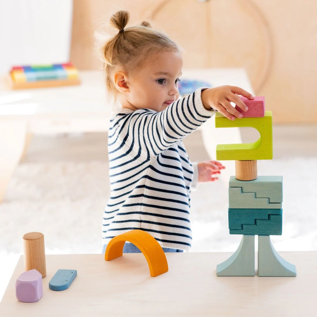 Een prachtige bouwset in luchtige kleuren 'Building World Cloud Play' van het Duitse merk Grimm's. Bouwspeelgoed met verschillende vormen om landschappen en bouwwerken te maken. De zachte pasteltinten worden gecombineerd met naturel hout.