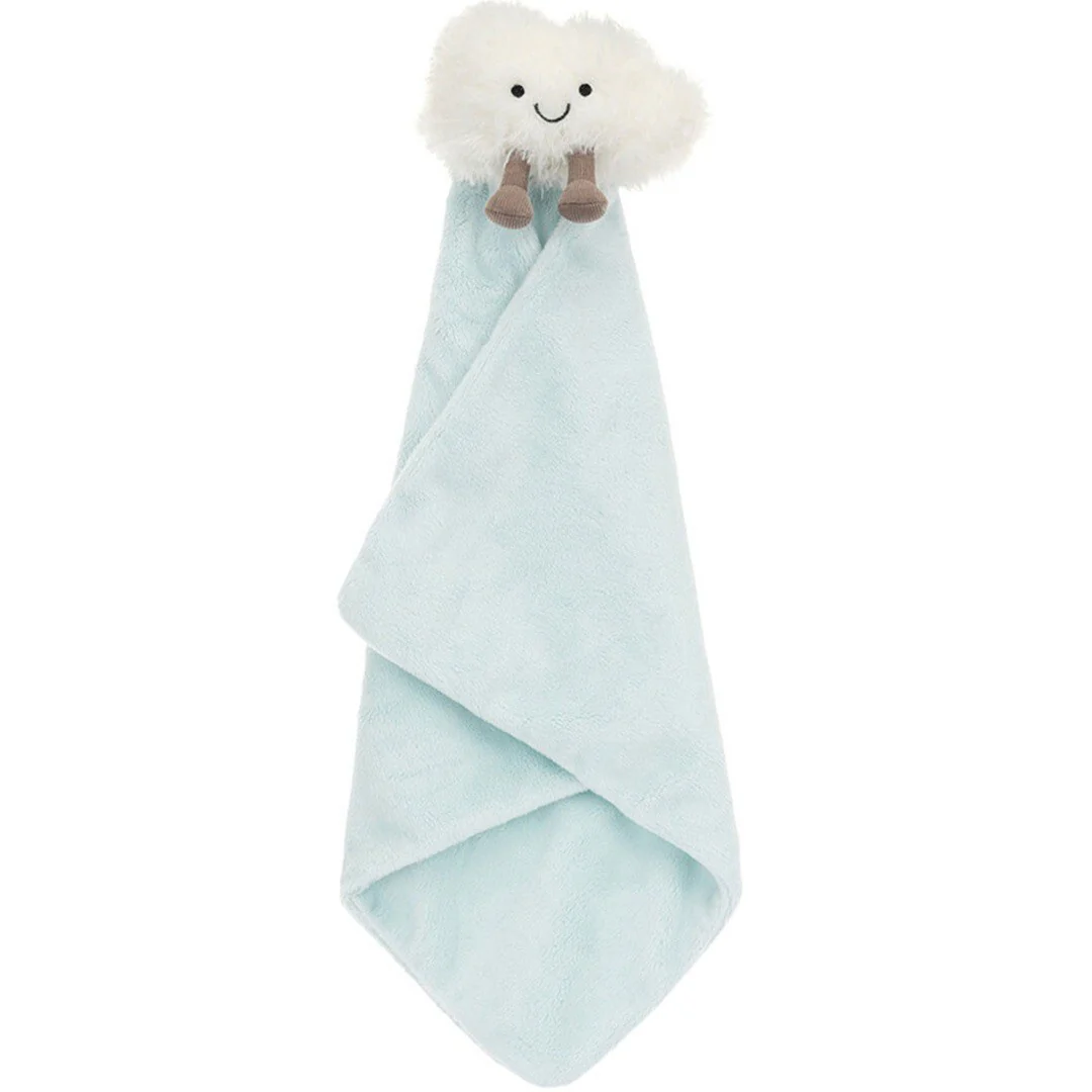 Dit knuffeldoekje 'Amuseables Cloud Soother' van het Engelse merk Jellycat zweeft zo uit de lucht de armen van kleine dromers in. Een onweerstaanbaar speelgoedknuffeltje om mee te tutten en te knuffelen.