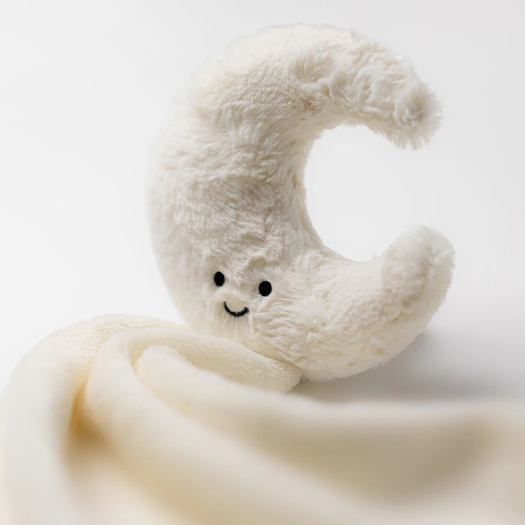 Deze 'Amuseable Moon Soother' van het Engelse merk Jellycat is een vrolijk maan-knuffeldoekje voor kleine baby's. Een onweerstaanbaar knuffeltje om mee te tutten en te knuffelen. Het knuffelmaantje heeft een geborduurde oogjes en een zacht lijfje.