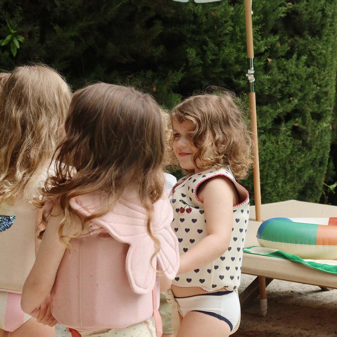 Zwempret verzekerd! Met het kinderzwemvest 'Manon Swim Vest - Coeur Eclipse' van het Deense merk Konges Sløjd duiken kleine waterratjes vol vertrouwen het water in.