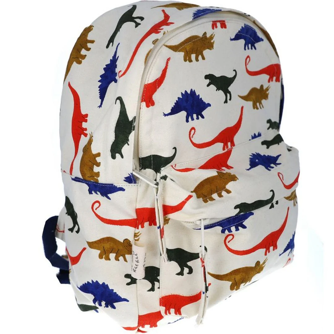 Deze kleine, kleurrijke kleuterrugzak met dino's 'Sac a dos enfant dinosaurus' van het Franse merk Le Petit Souk zorgt voor alles wat er nodig is bij een dagje school of kinderdagverblijf.