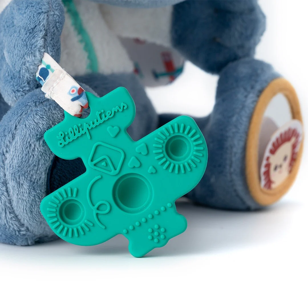 De activiteitenknuffel heeft een spiegel in zijn poot, maakt een knisperend geluid en heeft een bijtring met een reliëf dat de pijn verlicht bij doorkomende tandjes. Met zijn zachte vacht is de knuffelhond ook een heerlijke vriend om mee te knuffelen.