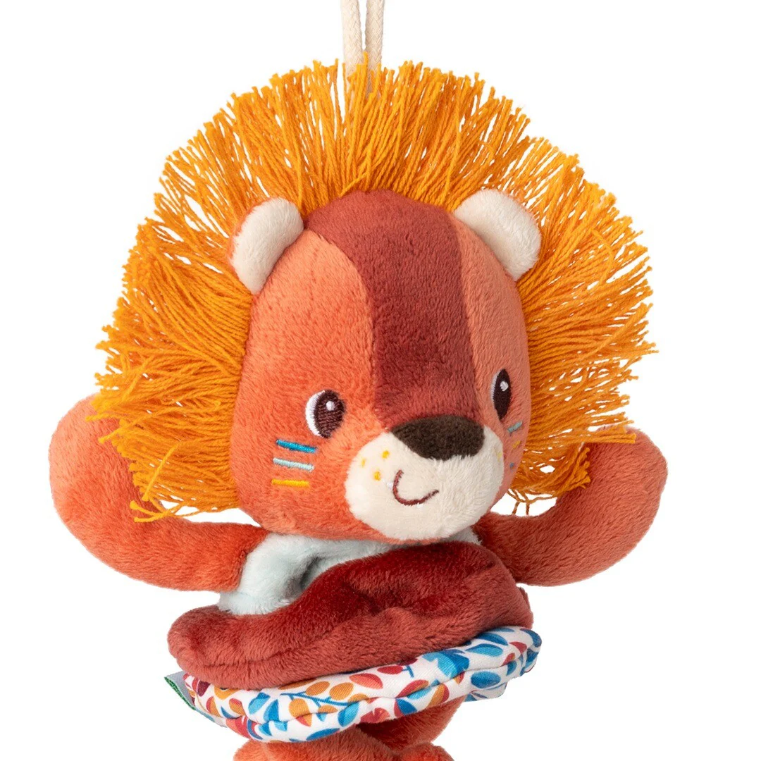Aan het koord kan de kleine dansende knuffelleeuw makkelijk aan een babyzitje, kinderzitje of speelhoek vastgemaakt worden. Zo gaat de danspret overal mee naartoe, waar je ook bent.
