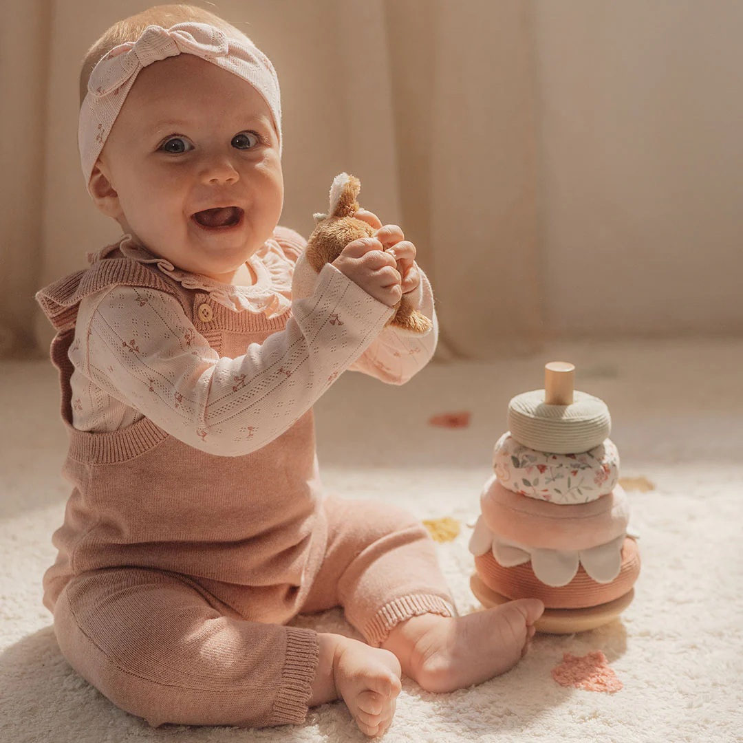 Een stapeltoren als tuimelaar, dat is de 'Rocking Ring Stacker - Fairy Garden' van het Nederlandse merk Little Dutch. Traditioneel speelgoed in een nieuw jasje met de wiebel als extra uitdaging. De verschillende materialen en texturen voelen voor de peuter verrassend aan. Met deze tuimelstapelaar is er voor de peuter veel te ontdekken.