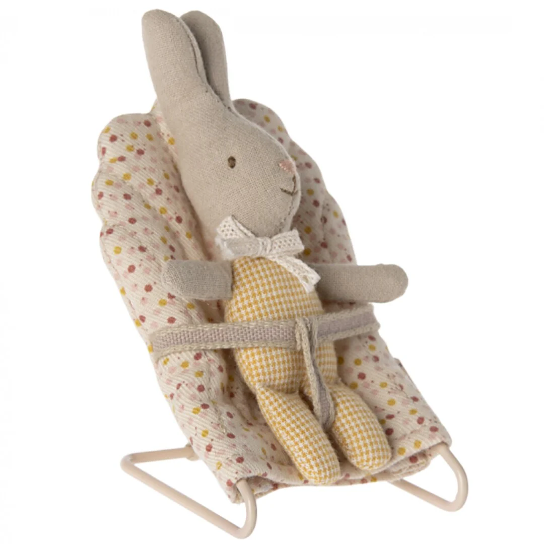 Een hartveroverend troeteltje 'Rabbit My - Yellow Check' van het Deense merk Maileg. Het kleine knuffelkonijntje is gekleed in een snoezig poppenpakje met geel-wit ruitjespatroon en draagt een vintage strikje. Het speelgoedknuffeltje heeft geborduurde oogjes en een roze neusje.