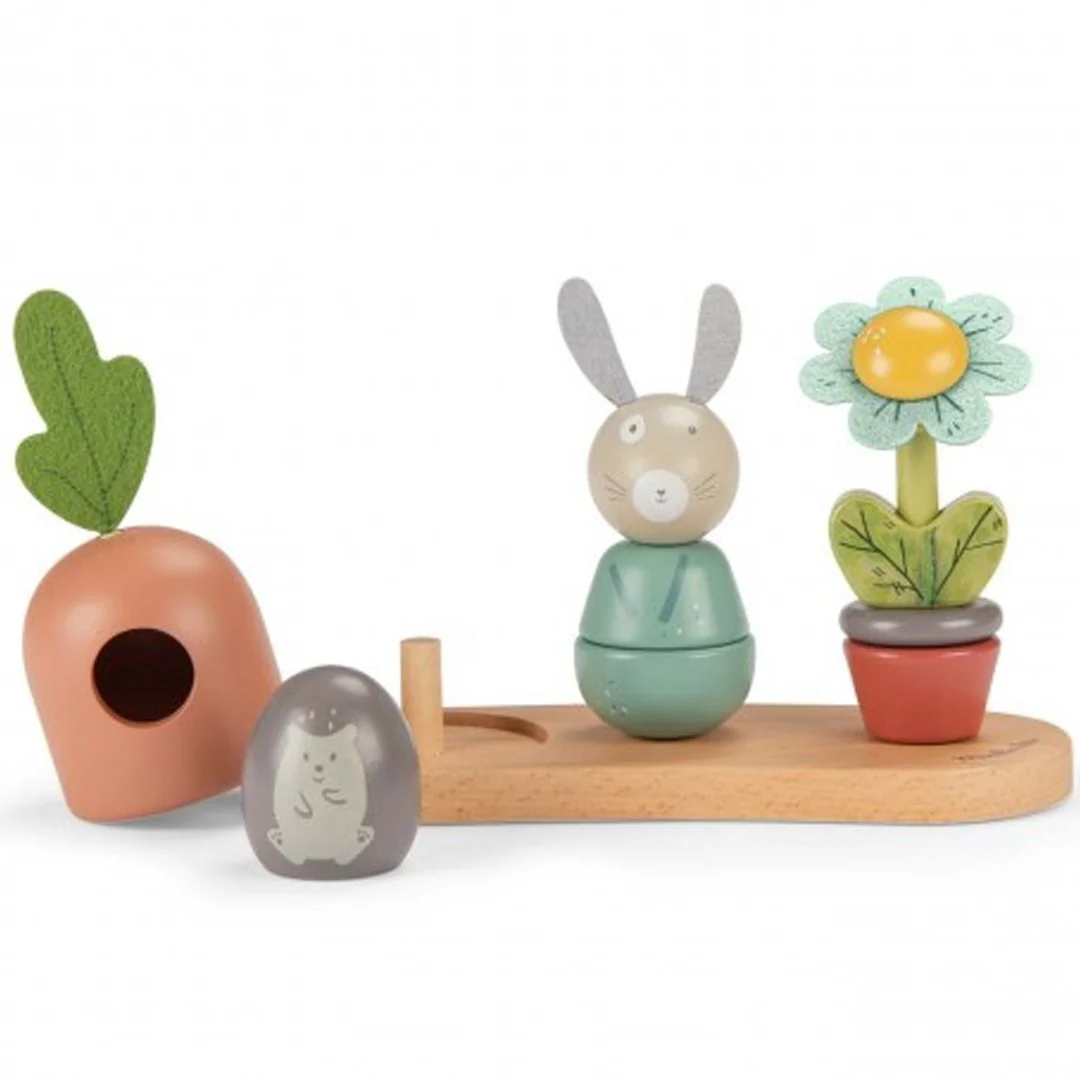 Met maar liefst drie stapeltorens op dit houten speelgoed 'Empilable Multi-Activités' uit de serie 'Trois Petits Lapins' van het Franse merk Moulin Roty kunnen peuters stapelen en bouwen tot er een bloem of konijntje staat. Op de andere toren kan een ei worden verstopt, wat een leuk verrassingselement geeft.