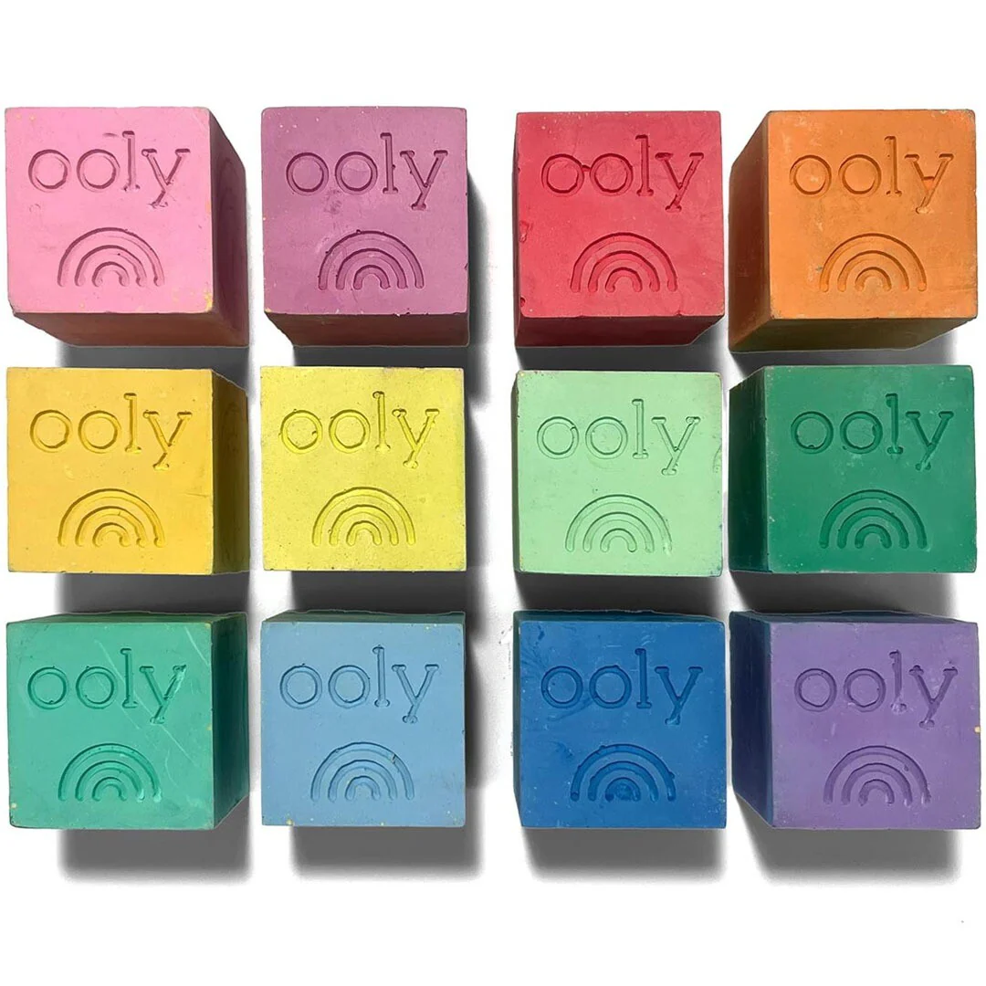 De set bestaat uit 12 kubusvormige krijtjes in alle kleuren van de regenboog. De vorm is met een reden zo: het is gemakkelijk vast te pakken en op te stapelen. Zo raakt het krijt niet snel kwijt.