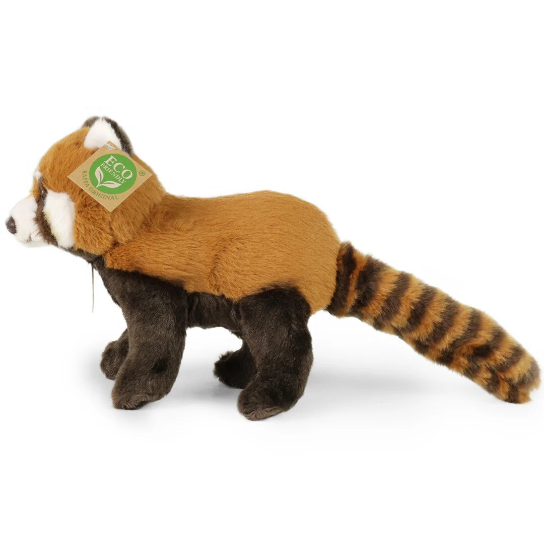 Met zijn opvallende gestreepte staart, guitige kraaloogjes en zachte oranjerode vacht is de knuffelpanda uiterst aaibaar. Aan zijn lange harige staart is hij makkelijk vast te pakken, zelfs door de kleinste handjes.