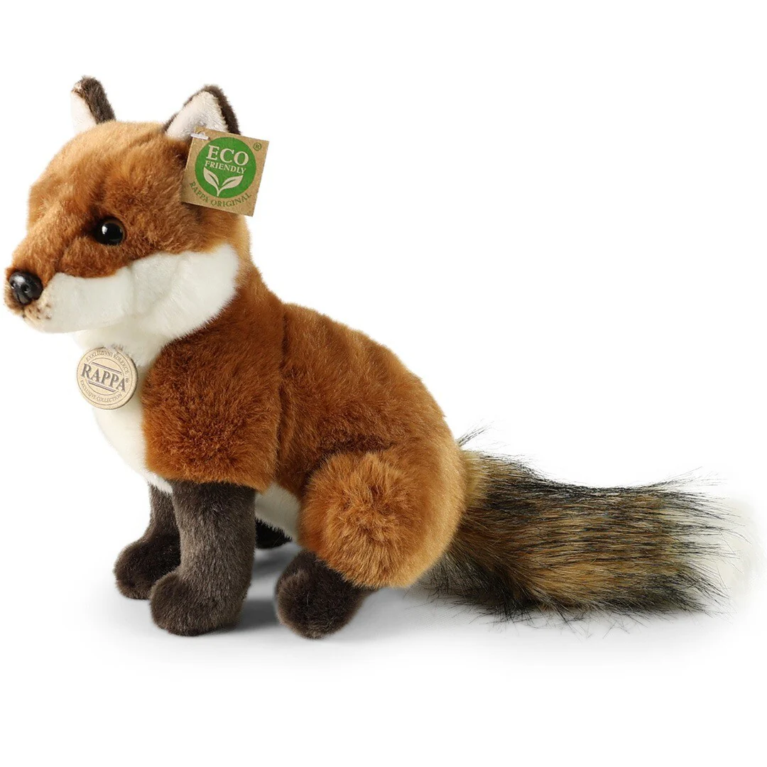 Deze flinke, slimme vossenknuffel 'Plush Fox - 27 cm Eco-Friendly' van het Poolse merk Rappa staat op de uitkijk voor bosavonturen, maar is ook graag op de bank om te knuffelen!