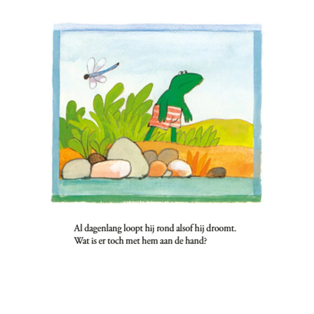 In het prentenboek 'Kikker is verliefd', geschreven door Max Velthuijs, begrijpt kikker niet waarom zijn hart zo druk klopt en zijn dagen zo anders aanvoelen.